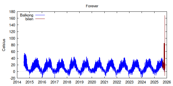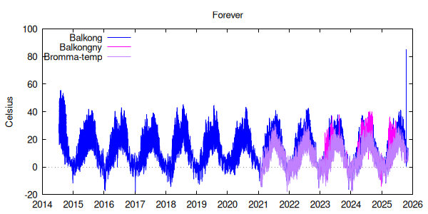 | Senaste plusgraden: | 2025-11-08 08:25:06 | dvs 0 dygn och 0 timmar sen |